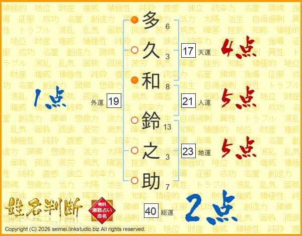 多久和鈴之助さんの総運は40画の2点!