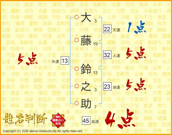 大(3画)藤(19画) 鈴(13画)之(3画)助(7画)