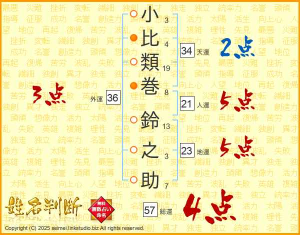 小比類巻鈴之助さんの総運は57画の4点!