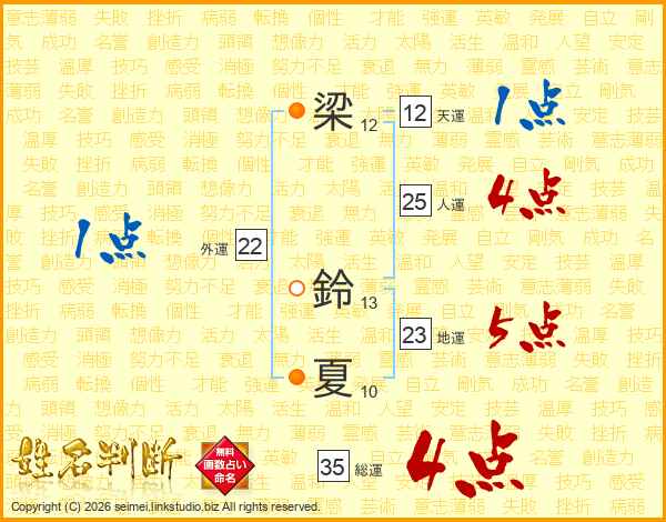 梁鈴夏さんの総運は35画の4点!