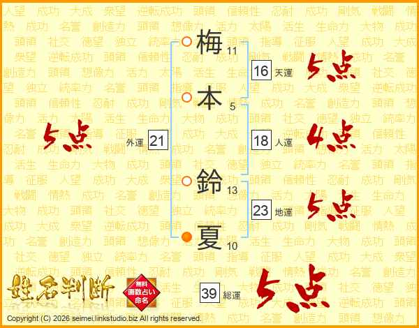 梅本鈴夏さんの総運は39画の5点!