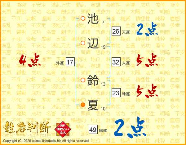 池辺鈴夏さんの天運は26画の2点!