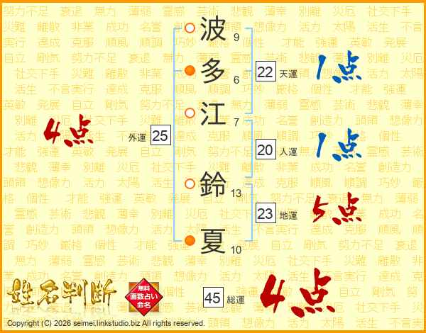 波多江鈴夏さんの総運は45画の4点!