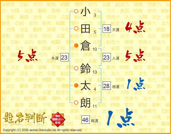 小田倉鈴太朗さんの総運は46画の1点!