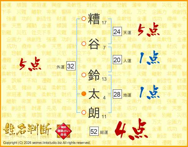 糟谷鈴太朗さんの総運は52画の4点!