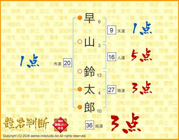 早山鈴太郎さんの総運は36画の3点!