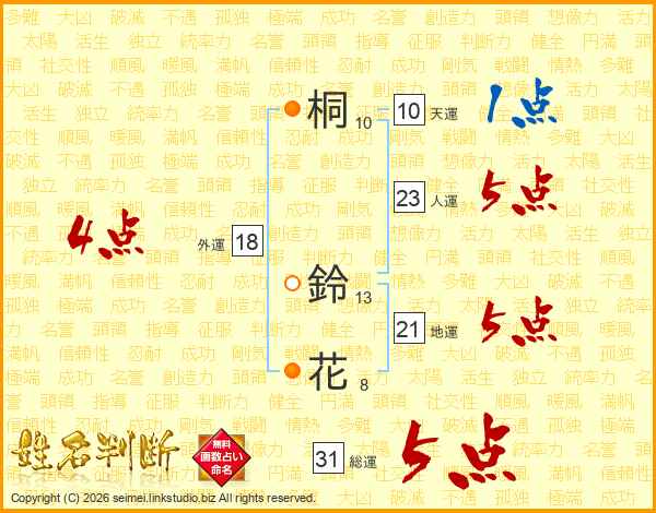 桐鈴花さんの総運は31画の5点!