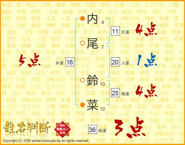 内尾鈴菜さんの外運は16画の5点!
