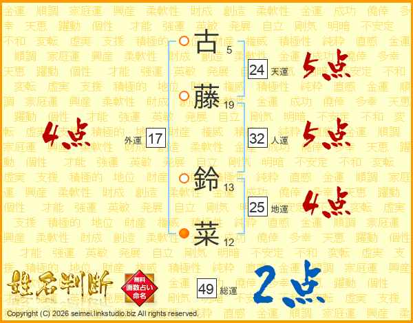古藤鈴菜さんの総運は49画の2点!