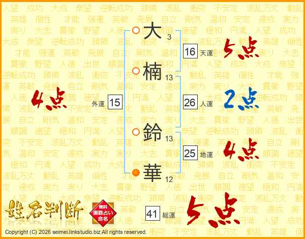 大楠鈴華さんの総運は41画の5点!