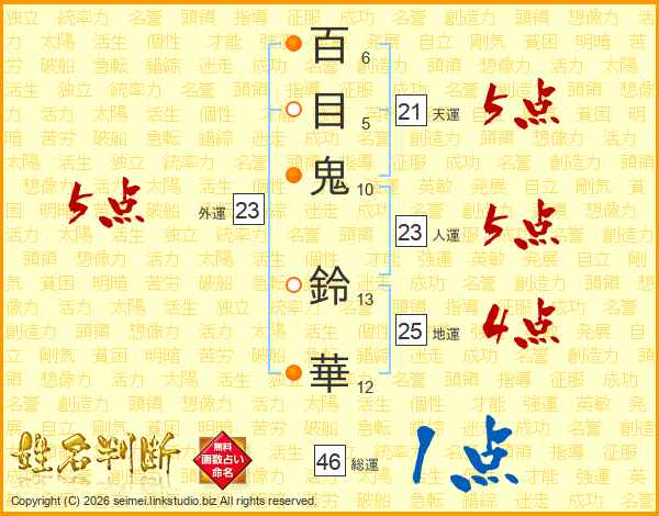 百目鬼鈴華さんの総運は46画の1点!