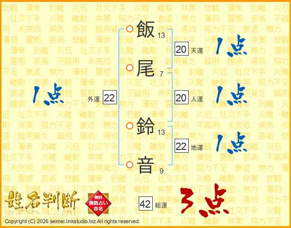 飯尾鈴音さんの総運は42画の3点!