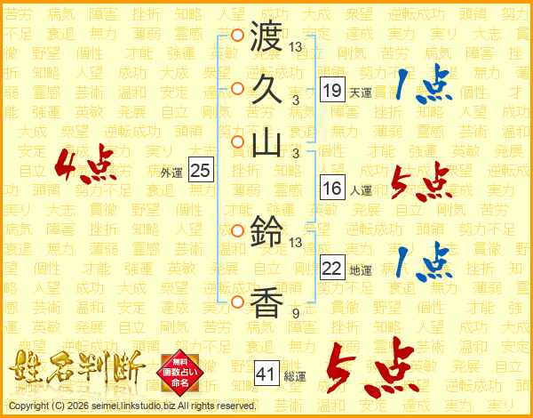 渡久山鈴香さんの総運は41画の5点!