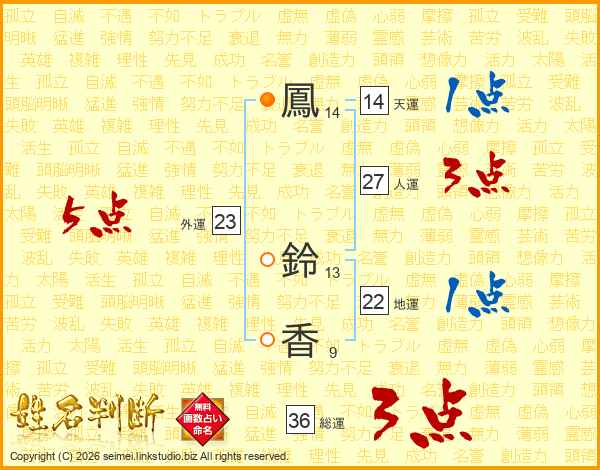 鳳(14画) 鈴(13画)香(9画)