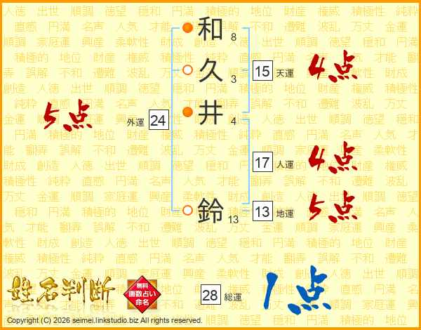 和(8画)久(3画)井(4画) 鈴(13画)