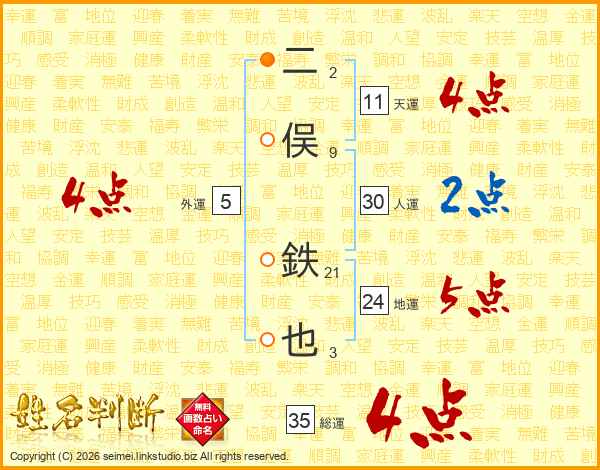 二俣鉄也さんの総運は35画の4点!