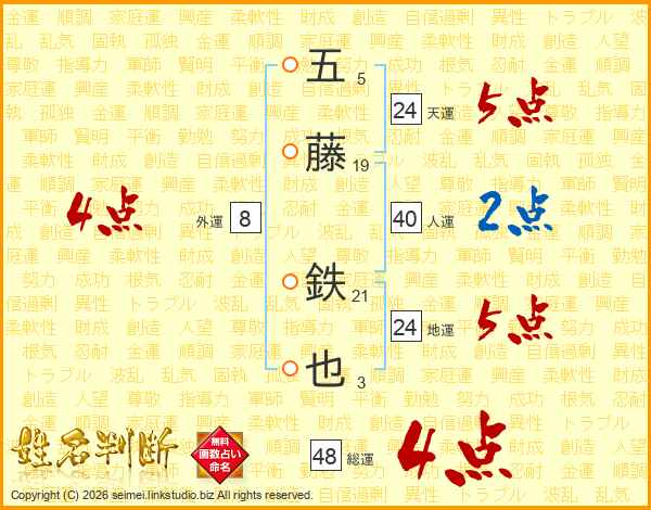 五(5画)藤(19画) 鉄(21画)也(3画)