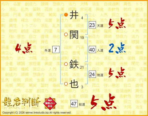 井関鉄也さんの総運は47画の5点!