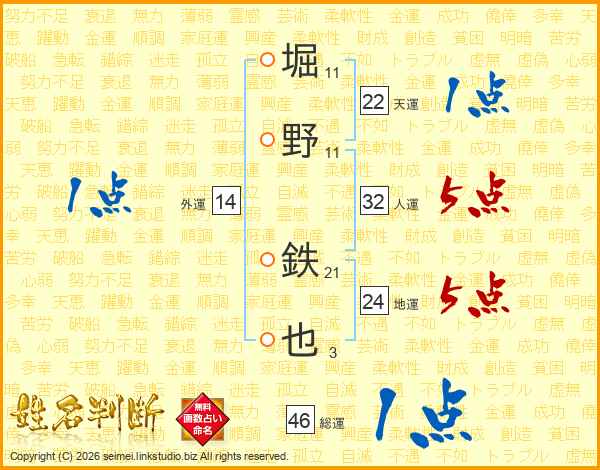 堀野鉄也さんの総運は46画の1点!