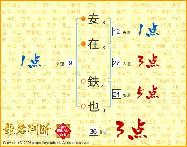 安在鉄也さんの総運は36画の3点!