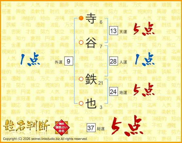 寺谷鉄也さんの総運は37画の5点!