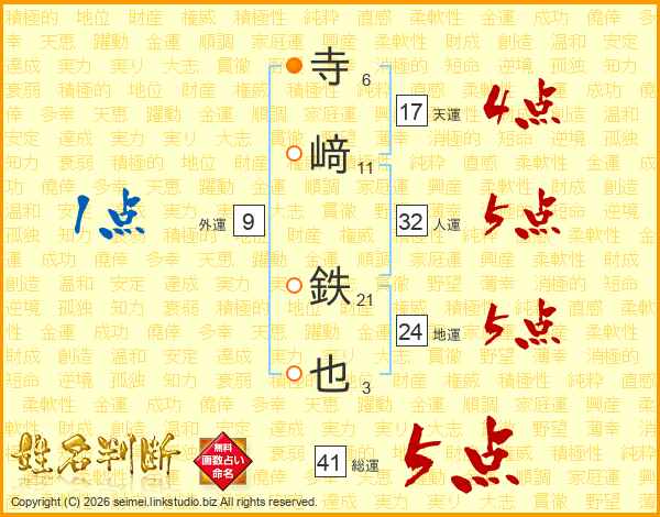 寺(6画)﨑(11画) 鉄(21画)也(3画)