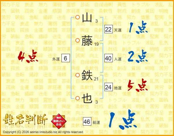 山藤鉄也さんの総運は46画の1点!
