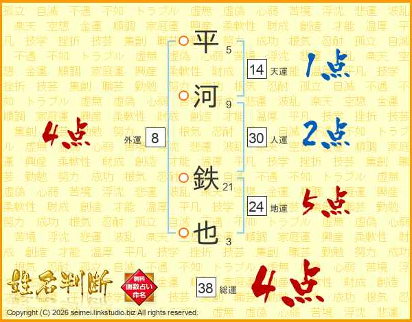 平河鉄也さんの総運は38画の4点!