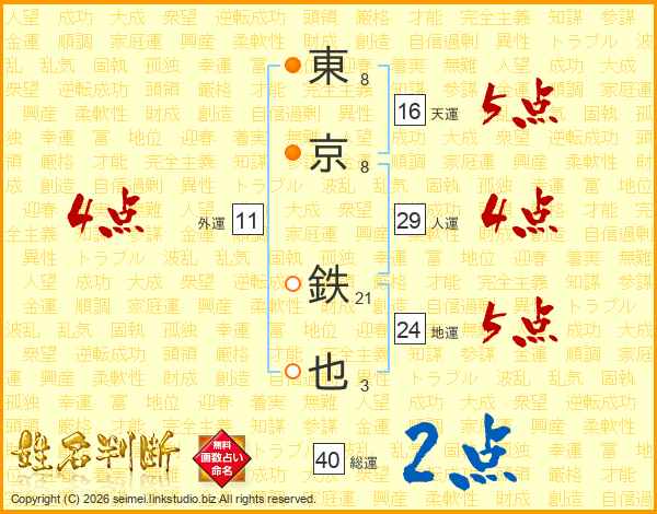 東京鉄也さんの人運は29画の4点!