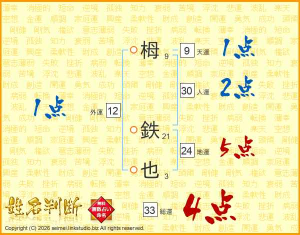 栂鉄也さんの総運は33画の4点!
