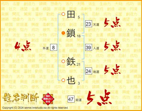 田鎖鉄也さんの総運は47画の5点!