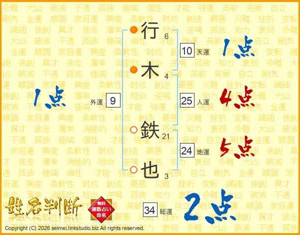 行木鉄也さんの総運は34画の2点!