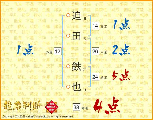 迫田鉄也さんの総運は38画の4点!