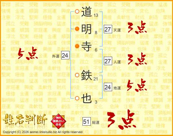 道明寺鉄也さんの総運は51画の3点!