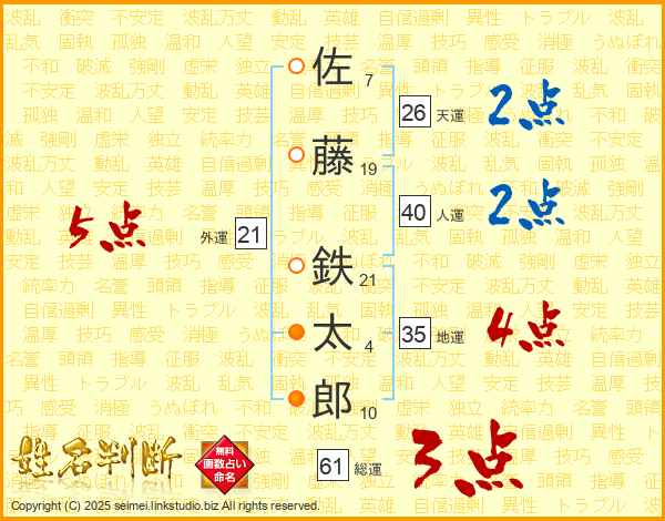 佐藤鉄太郎さんの外運は21画の5点!