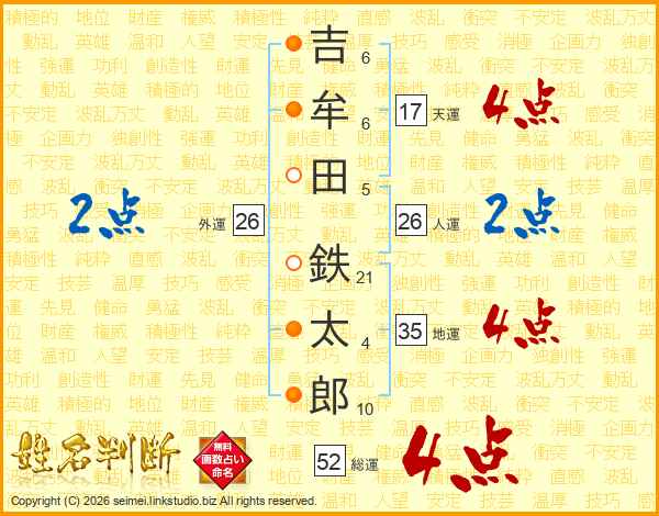 吉牟田鉄太郎さんの総運は52画の4点!