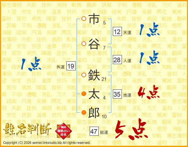 市谷鉄太郎さんの総運は47画の5点!