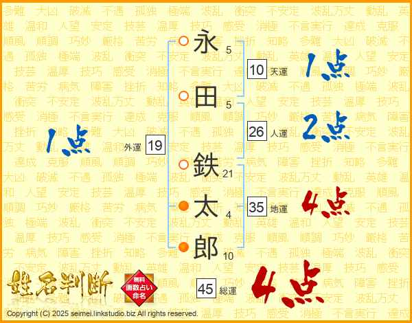 永田鉄太郎さんの総運は45画の4点!