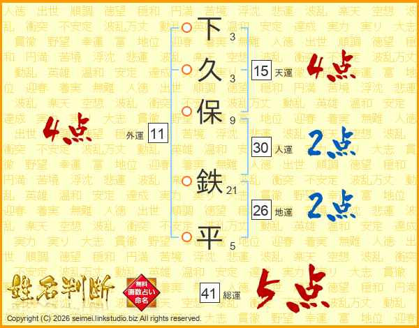 下(3画)久(3画)保(9画) 鉄(21画)平(5画)