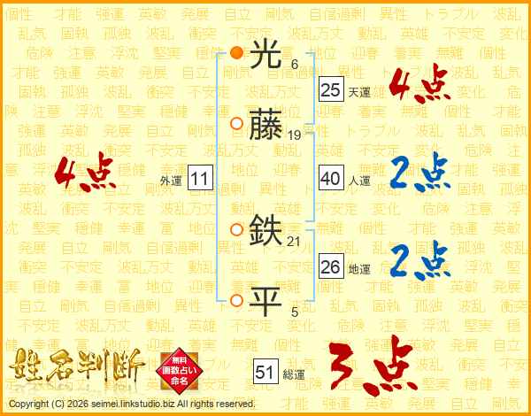 光藤鉄平さんの天運は25画の4点!