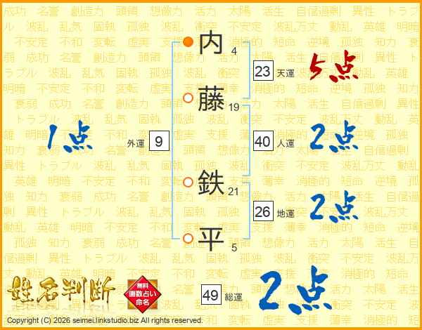 内藤鉄平さんの天運は23画の5点!