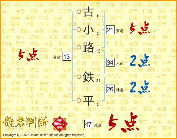 古小路鉄平さんの総運は47画の5点!