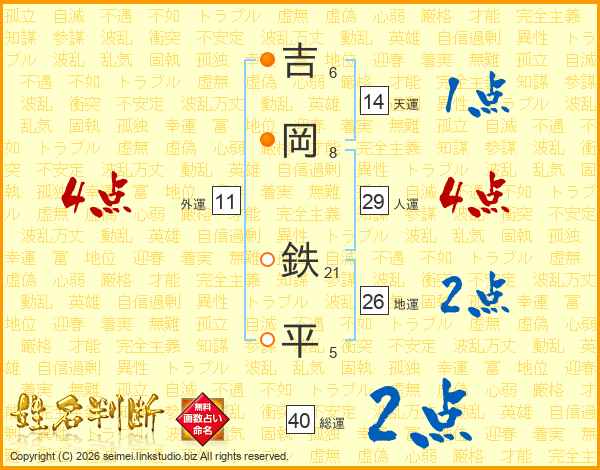 吉岡鉄平さんの人運は29画の4点!