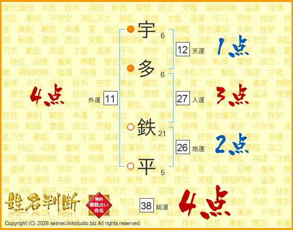 宇多鉄平さんの地運は26画の2点!