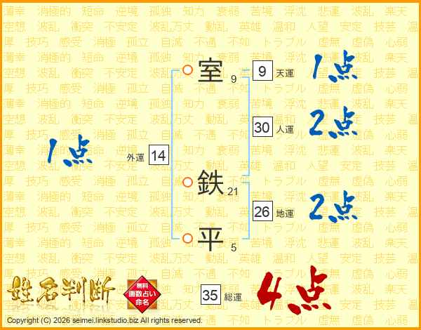 室鉄平さんの地運は26画の2点!
