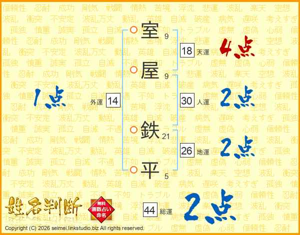室(9画)屋(9画) 鉄(21画)平(5画)