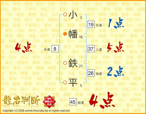 小幡鉄平さんの総運は45画の4点!