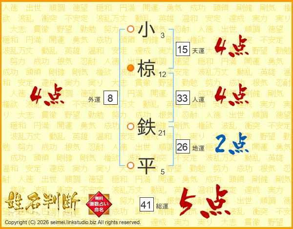 小(3画)椋(12画) 鉄(21画)平(5画)
