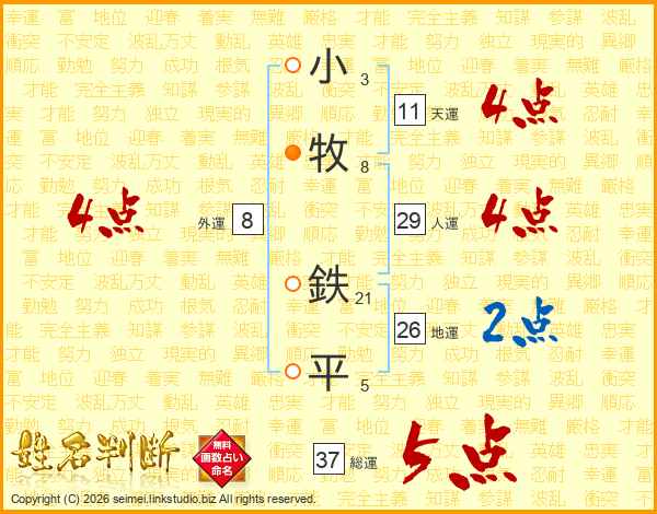 小牧鉄平さんの総運は37画の5点!