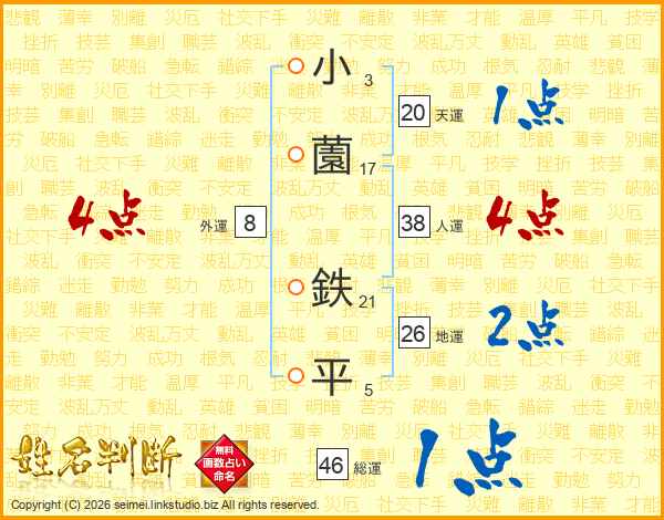 小薗鉄平さんの地運は26画の2点!